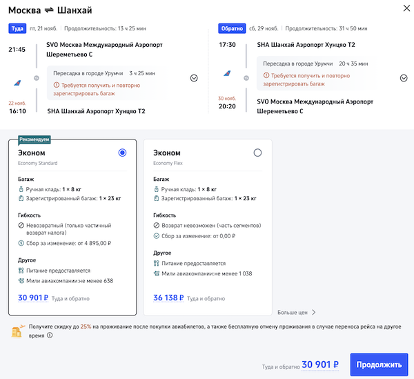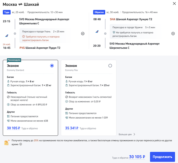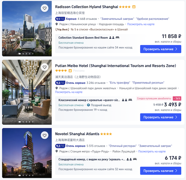 Билеты из Москвы в Шанхай от 30.100 рублей туда-обратно.