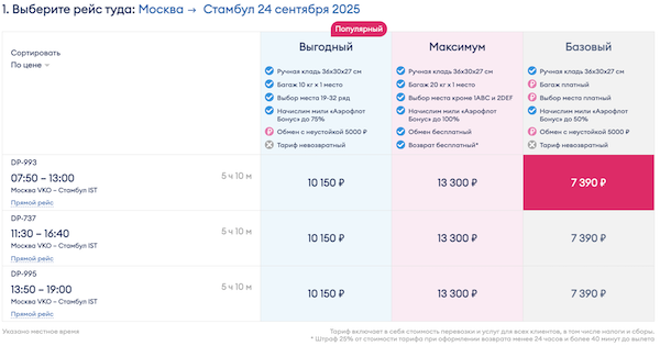 Минимальные цены на рейсы 24, 25 и 26 сентября