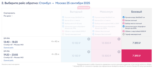 Из Москвы в Стамбул в сентябре 7.400 рублей в каждую сторону.