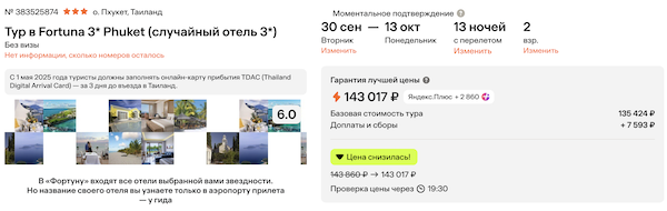 Горящие туры из Санкт-Петербурга на Пхукет от 71.500 рублей за человека.