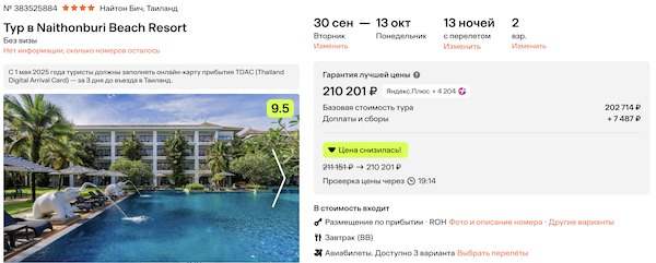 Naithonburi Beach Resort 4* с завтраками 105.100 рублей за человека (210.200 рублей за двоих)