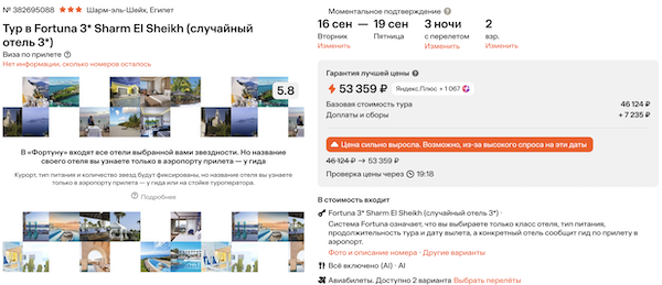 Даты вылетов: с 16 по 19 сентября.