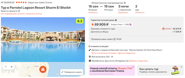 — прямой перелет в Шарм-эш-Шейх и обратн;