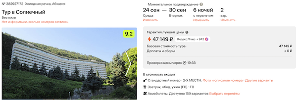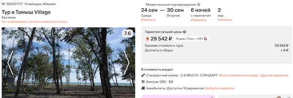 Туры в Абхазию на неделю в сентябре: из Самары, Уфы, Омска, Тюмени и других городов от 14.700 рублей за человека.