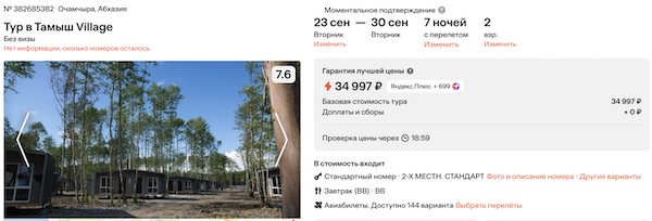 Тамыш Village с завтраками 17.500 рублей за человека (35.000 рублей за двоих)