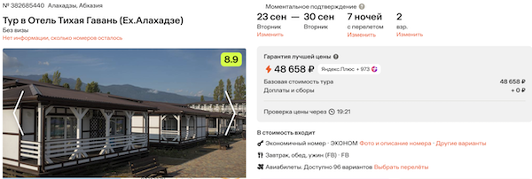 Отель Тихая Гавань с завтраками, обедами и ужинами 24.300 рублей за человека (48.700 рублей за двоих)
