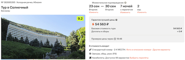 Туры из Москвы в Абхазию на неделю в конце сентября от 17.500 рублей за человека.