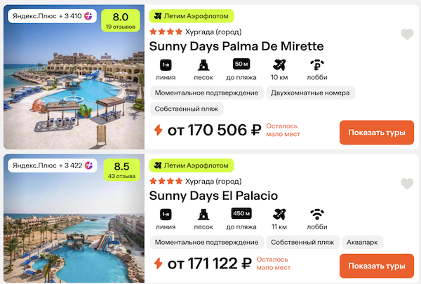 — прямой перелет в Хургаду и обратно, Аэрофлот;