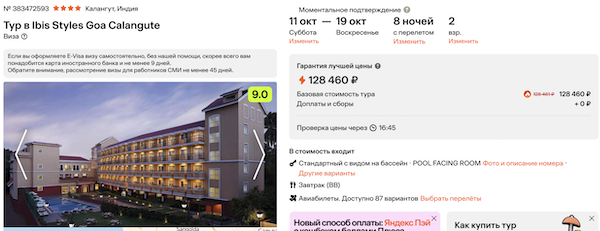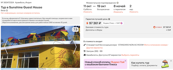 Туры из Москвы в Гоа в октябре от 48.700 рублей за человека.