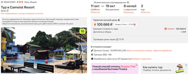 Стоимость в примерах указана за одного человека при условии поездки вдвоем, стоимость туров для одного человека можно посмотреть здесь или на страницах отелей.