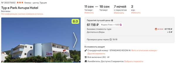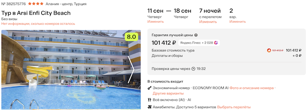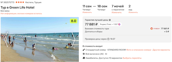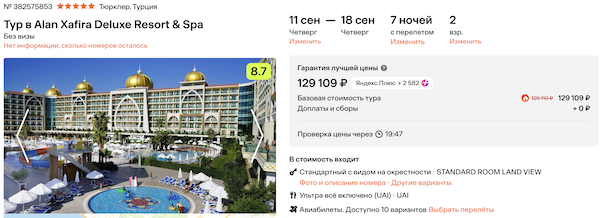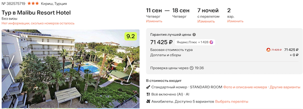 Стоимость в примерах указана за одного человека при условии поездки вдвоем. Стоимость туров для 1 человека можно посмотреть здесь или на странице отелей, изменив количество туристов.