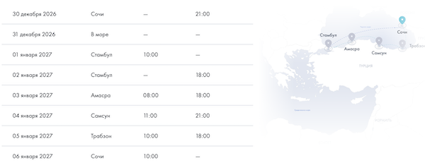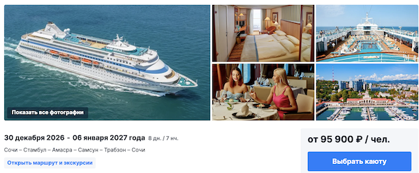 Раннее бронирование на следующий Новый год: круиз из Сочи (Стамбул, Амасра, Самсун, Трабзон) от 95.900 рублей за человека, питание включено, визы не нужны.