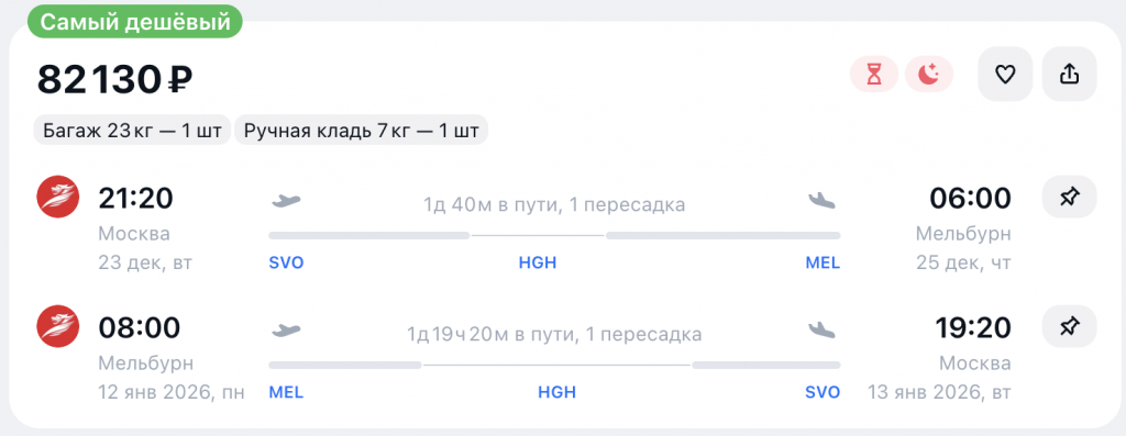 Новый год в Австралии: билеты из Москвы в Мельбурн от 79.100 рублей туда-обратно.