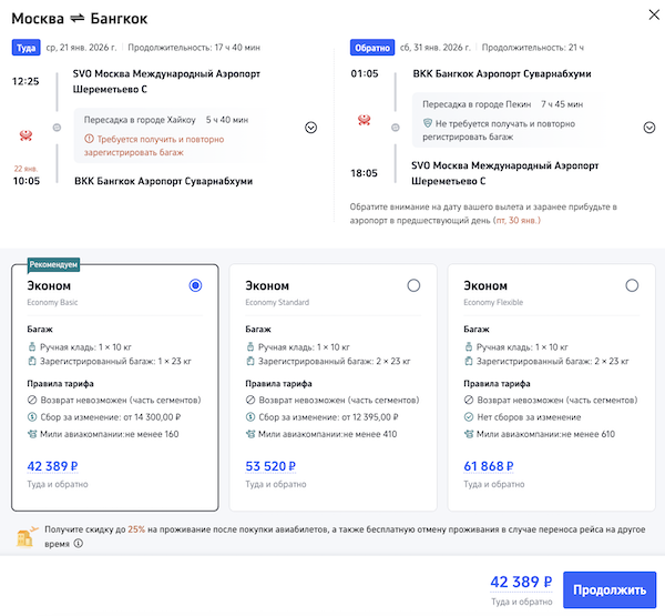 В Таиланд зимой: билеты из Москвы в Бангкок от 42.400 рублей туда-обратно.