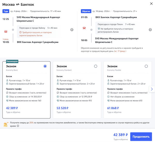 В Таиланд зимой: билеты из Москвы в Бангкок от 42.400 рублей туда-обратно.