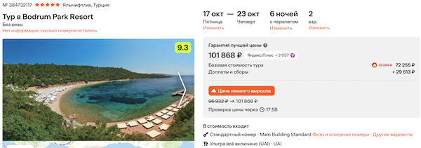 Bodrum Park Resort 50.900 рублей за человека (101.900 рублей за двоих)