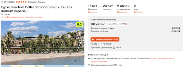 Selectum Collection Bodrum 59.300 рублей за человека (118.700 рублей за двоих)