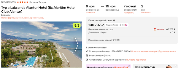 Labranda Alantur Hotel 53.300 рублей за человека (106.700 рублей за двоих)