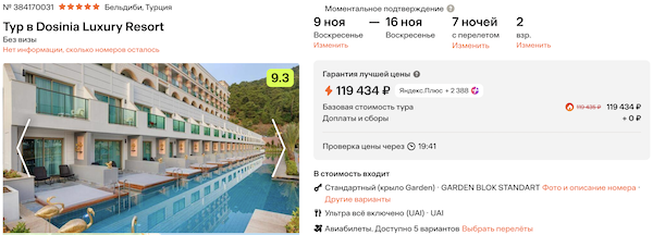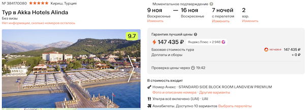 Стоимость в примерах указана за одного человека при условии поездки вдвоем, стоимость туров для одного человека можно посмотреть здесь или на страницах отелей.