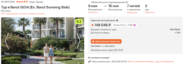 Barut GOIA 74.000 рублей за человека (148.000 рублей за двоих)