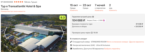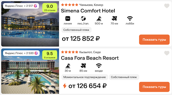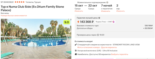 Стоимость в примерах указана за одного человека при условии поездки вдвоем, стоимость туров для одного человека можно посмотреть здесь или на страницах отелей.