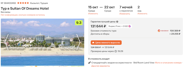 Sultan Of Dreams Hotel 65.800 рублей за человека (131.600 рублей за двоих)