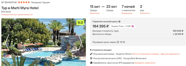 Marti Myra Hotel 92.200 рублей за человека (184.400 рублей за двоих)