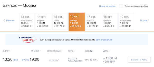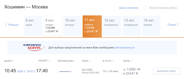 А вернуться можно за мили (1.000 миль + 25.800 рублей)