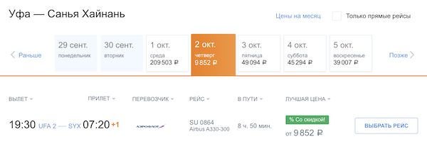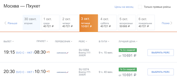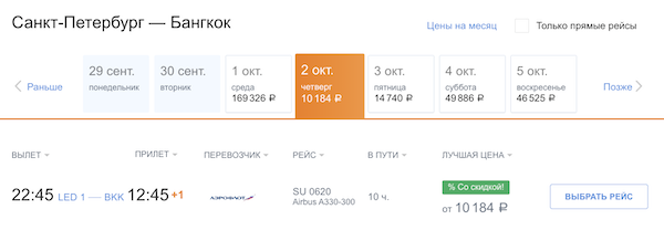Сегодня (1 октября) скидки на билеты с вылетами 2 и 3 октября.