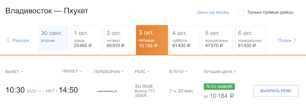 Владивосток — Пхукет 10.200 рублей