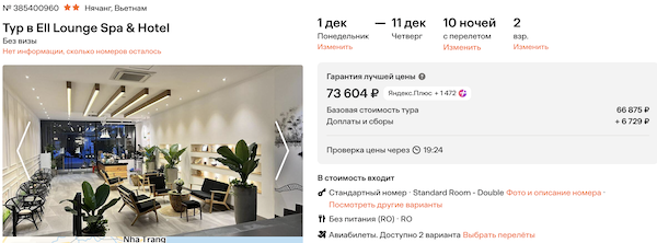 Стоимость в примерах указана за одного человека при условии поездки вдвоем. Стоимость туров для 1 человека можно посмотреть здесь или на странице отелей, изменив количество туристов.