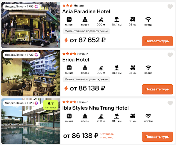 Как забронировать: перейдите по ссылкам в примерах.