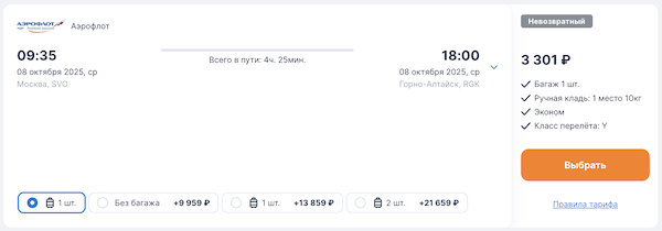 Из Москвы утром 8 октября Аэрофлотом в Горно-Алтайск 3.300 рублей (билеты на сайте Библио-Глобус).