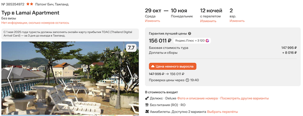 Lamai Apartment 78.000 рублей за человека (156.000 рублей за двоих)
