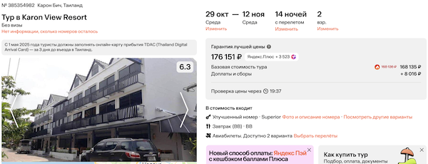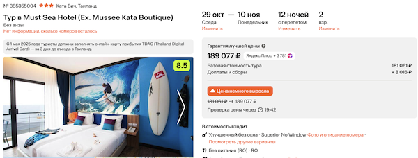 Горящие туры из Москвы на Пхукет от 78.000 рублей за человека.