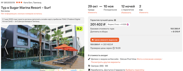 Стоимость в примерах указана за одного человека при условии поездки вдвоем, стоимость туров для одного человека можно посмотреть здесь или на страницах отелей.