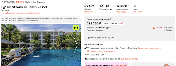 Naithonburi Beach Resort 4* с завтраками 116.900 рублей за человека (233.800 рублей за двоих)