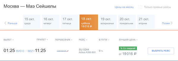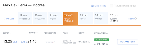 Горящие билеты на прямые рейсы Аэрофлота из Москвы на Сейшелы 40.800 рублей туда-обратно.