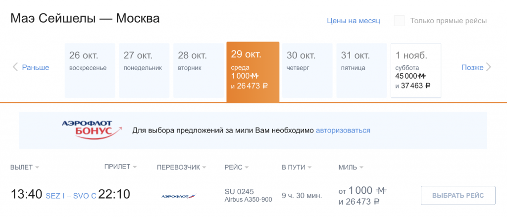 За 1.000 миль и 26.500 рублей можно вернуться и в другие даты октября