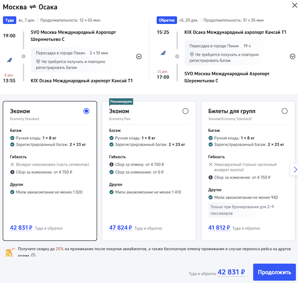 Рейсы выполняются авиакомпанией China Southern с пересадкой в Пекине.