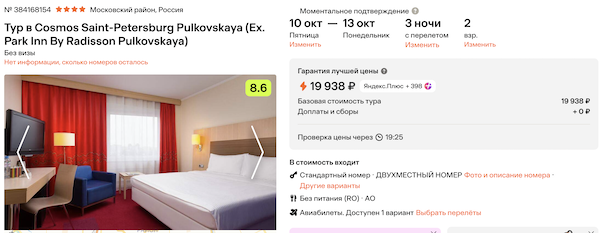 Стоимость в примерах указана за одного человека при условии поездки вдвоем, стоимость туров для одного человека можно посмотреть здесь или на страницах отелей.