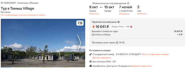 Тамыш Village 8.300 рублей за человека (16.600 рублей за двоих)