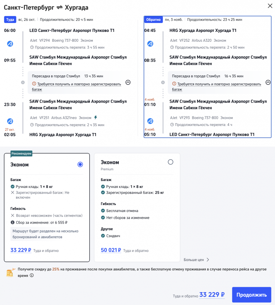 Рейсы авиакомпании AJet выполняются с долгими дневными пересадками в Стамбуле.