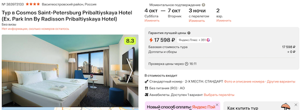 Даты поездки: с 4 по 7 октября.