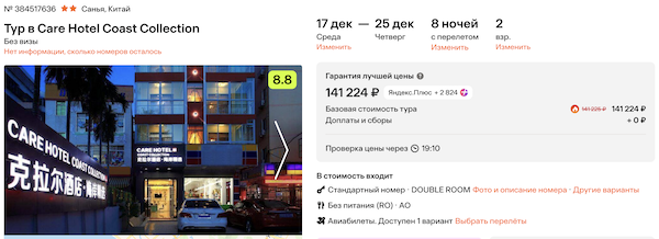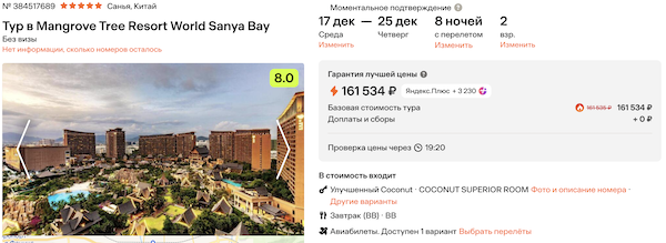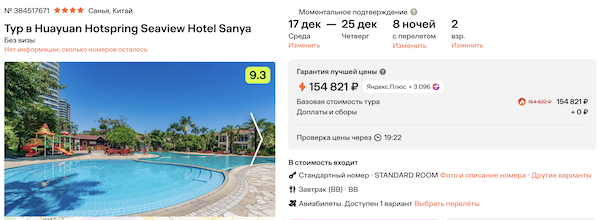 Туры из Москвы на Хайнань на неделю в декабре от 70.600 рублей за человека.