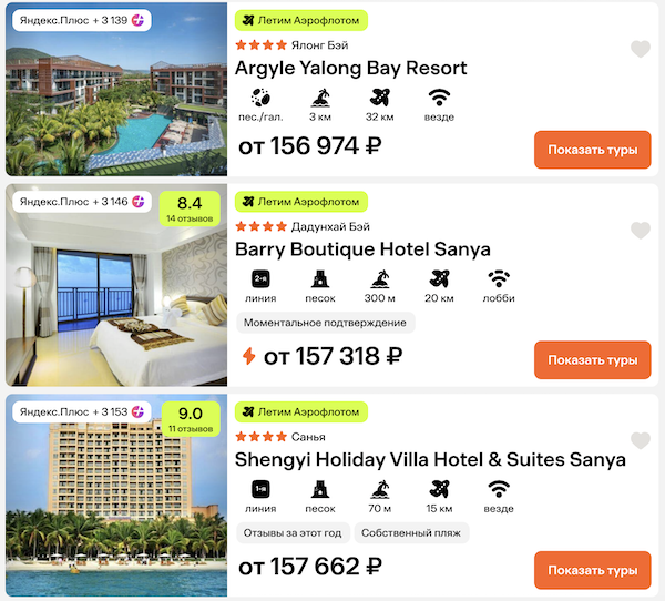 — прямой перелет в Санья и обратно, Аэрофлот;