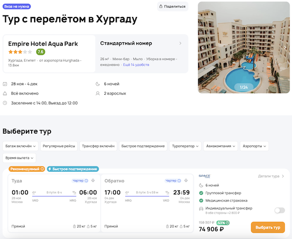 Стоимость в примерах указана за одного человека при условии поездки вдвоем, стоимость туров для одного человека можно посмотреть здесь или на страницах отелей.