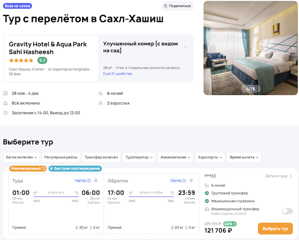 Gravity Hotel & Aqua Park Sahl Hasheesh 5* 60.800 рублей за человека (121.700 рублей за двоих)