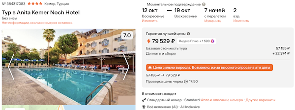 Anita Kemer Noch Hotel 4* 39.700 рублей за человека (79.500 рублей за двоих)