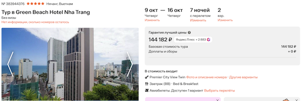 Green Beach Hotel Nha Trang 5* с завтраками 72.100 рублей за человека (144.200 рублей за двоих)